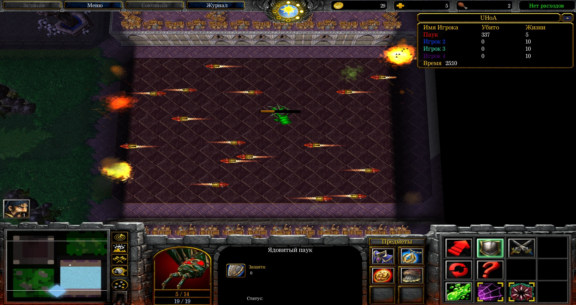 У паука Q – ядовитый плевок, обычный скилшот, W – паутинка замедляющая врага в области, при этом урон от Q увеличивается пока цель под этим дебафом. E – тоже дебаф, при смерти из врага появляется маленький паучок.