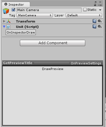 Здесь вы не найдете метод OnPreviewGUI - этот метод специфичен, и используется вручную, когда необходимо отобразить элемент. Код обычно следует следующему примеру: