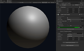Сфера — это простейший пример LASP, который показывает анимированную сферу, размер которой зависит от уровня звука. Он использует компонент Отслеживание уровня звука для расчёта уровня звука и Привязку свойств для анимации свойства размера сферы.