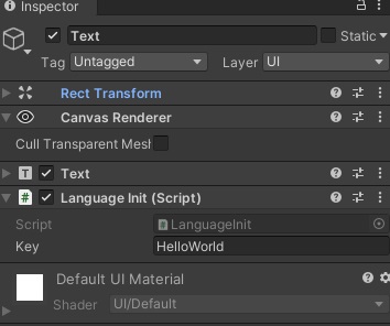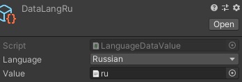 Потом закидываем LanguageManager на любой объект в 1й сцене или сцене инициализации (паттерн используется Синглтон контейнер можете под свой сделать менеджер)