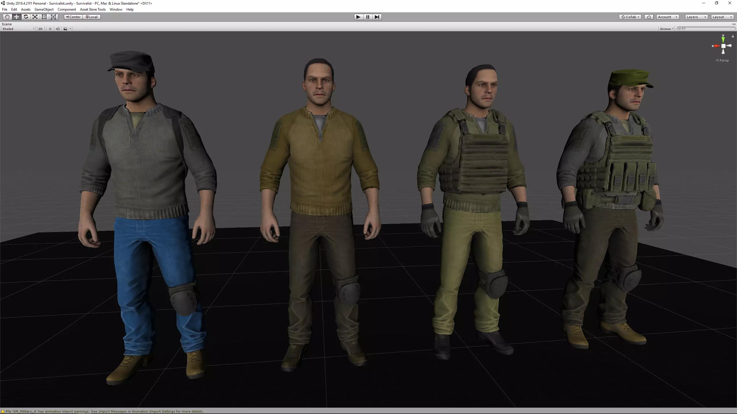 Набор "выживальщиков" для милитари тематики или нашествия зомби. Используйте готовые префабы или настройте их под себя. Отлично интегрируется в жанры FPS\TPS!