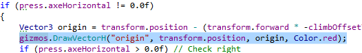 Часто случается, что требуется посмотреть, что за вектора у тебя получаются в том или ином участке кода. Для такой функции конечно, можно выносить все в отдельные переменные, подключать рисовалку по Gizmos/Handles, но я решил поступить чуть проще и написать отдельный класс, который это делает.