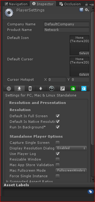 Edit>Project Settings> Player
