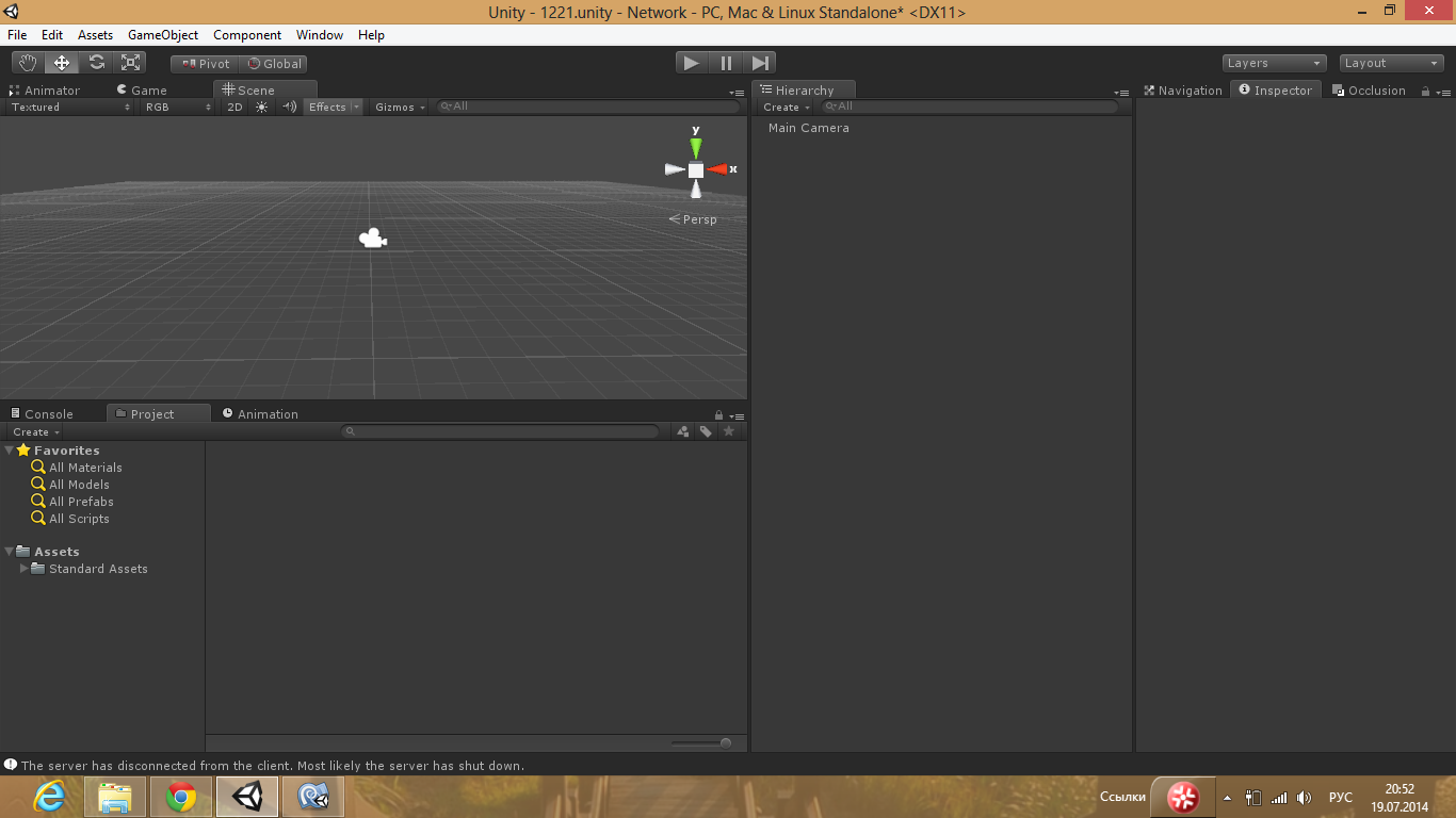 Далее выберем нашу основную камеру и создадим новый скрипт, назовем его NetworkExample