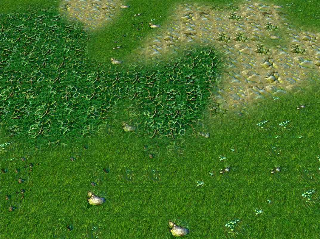 prog, генератор выдаст одно и то же. Посмотри внимательно на функцию. Увидишь там хоть что-то вариативное от запуска к запуску... ну будешь большим молодцом. Что касается возможности принудительно сменить вариацию тайла... ну да, есть такое. Но как бы цель была сделать стандартный террайн чуть более красивым... если речь идет о такого рода модификациях, то скорее всего придется писать свой террайн энжин. Тут же есть ряд ограничений, хотя бы связанных с тем, что для каждого прохода шейдера все текстуры устанавливаются программно + шейдер как таковой не умеет сохранять данные на диск и брать их оттуда =)