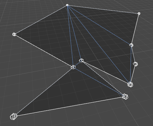 Но не беда прочитать о ней, хочется еще и не изобретать велосипед и взять что-то готовое. Так решил сделать и я, но попытки не увенчались успехом - алгоритм Делоне на 1000 строк кода часть треугольников зачем-то переворачивал, а ушная триангуляция прикрепленная к самой вики статье - на 7000 строк ужасно кривого кода, в котором просто невозможно разобраться. Это принудило меня к написанию алгоритма с нуля - встречайте, ушная триангуляция для Unity всего на 100 строк.