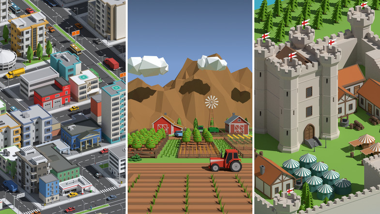 SimplePoly World - это большой пак моделей в стиле Low Poly Art, предназначенный для использования в разработке современных городов, деревень, ферм, средневековых локаций и природных пейзажей.
