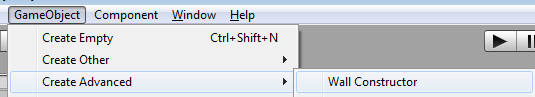 Новый объект создается через пункт меню "GameObject/Create Advanced/Wall Constructor".