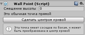 Теперь переключитесь обратно на точку "2". Данная точка теперь не находится с краю и может быть использована как центр кривой. Нажмите кнопку "Сделать центром кривой" в инспекторе. После нажатия ваша стена преобразится в кривую.