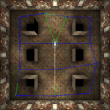Заметьте, что дорожки должны проходить через весь уровень. При построении вашей сети дорожек, чтобы боты действовали как человек разместите Path Nodes так, как бы вы сами пробежали ваш уровень, а не только прямо по центру каждой комнаты. Если бы вы пробежали от одного угла зала к противоположному углу, потому что это было бы быстрее, разместите Path Nodes так же, чтобы боты сделали то же самое. Экспериментируйте с вашей сетью дорожек, чтобы удостовериться, что боты не стоят на месте в какой либо части вашего уровня или поворачивают назад при неожиданном обрыве дорожки. Вам придётся перемещать или добавлять Path Nodes, чтобы устранить любые проблемы с вашей сетью дорожек.