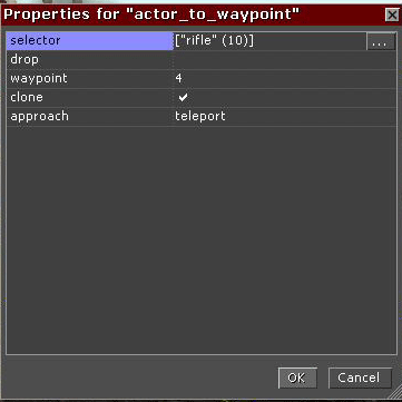 Создайте команду Other ->Acton to waypoints.В принципе тут тоже самое что и с предыдущим только поставьте другой вейпонт и тэг, да не делайте их много в одной точке.