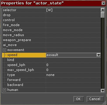 Entity-> entity_state, в поле Tag_add( напишите изменённый тэг юнита, например Rifle_1), а в поле Remove_tag его старый тэг. Чтобы при спавне солдат бежал а не шел, нужно задать в вейпойнте команду Acton_state,в поле speed выберите Assault.