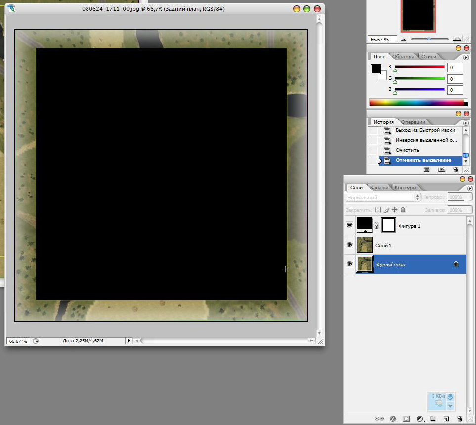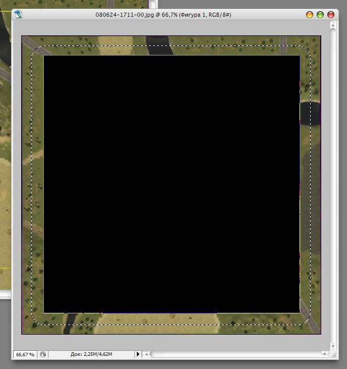 Жмем правую кнопку, выбираем инверсию выделения и жмем delete – границы изображения будут такими же, как на рисунке.