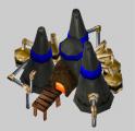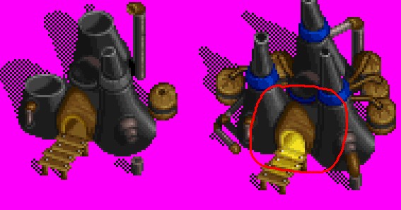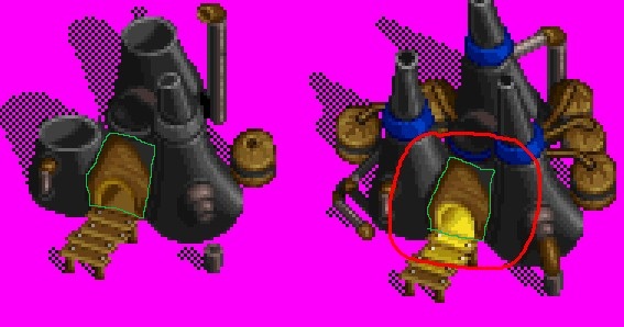 Сначала я думал, что это металлическое здание просто освещаемое желтым светом из входа, но на анимации строительства, входного света нет, а цвет такой же.