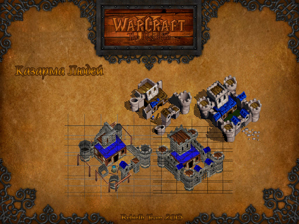 У казарм очень плохая текстура крыш боковых башен. Нужно придумать, что там сделать: кожу, доски или ещё что. И сделать это. У спрайта из WC2 неопределённая коричневая крыша смотрится нормально за счёт его маленького размера и за счёт того, что там нарисованы падающие тени, но в WC3 падающих теней нет.