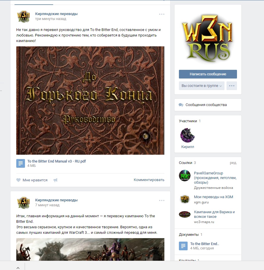 Также хочу сообщить вам, что я додумался-таки создать группу о своих (а может, и не только) переводах ВКонтакте. Там вы сможете узнать последние новости, мнения, пообсуждать кампании и заняться всяким подобным. Проект на XGM мало подходит для таких целей, так что милости прошу!