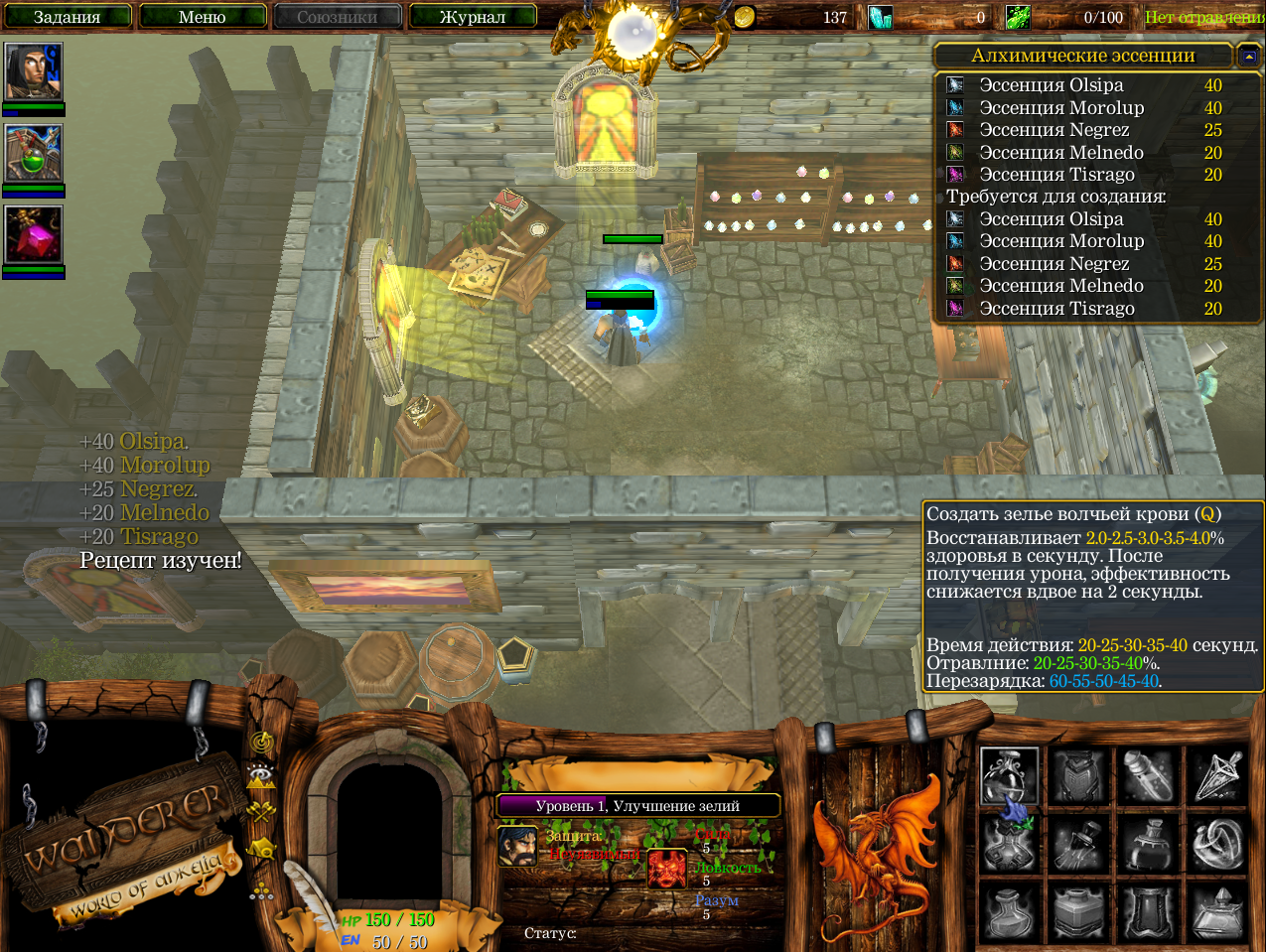 Инвентарь и система профессий. Создавайте зелья, настойки, яды. Куйте кольца со случайными характеристиками или создайте бустер, который увеличит вашу стойкость!