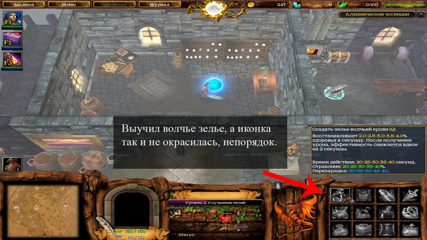 Инвентарь и система профессий. Создавайте зелья, настойки, яды. Куйте кольца со случайными характеристиками или создайте бустер, который увеличит вашу стойкость!
