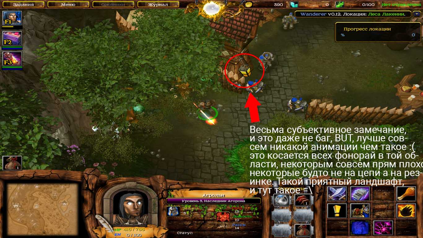 Ищи лагерь возле главной дороги, которая начинается с конца ущелья гарпий (Где стартовый замок) и на север до конца карты (где королевский гарнизон). Насчет башен да, там беда с анимациями, хотя это с какой стороны посмотреть :D под определенным углом анимация выглядит нормально.