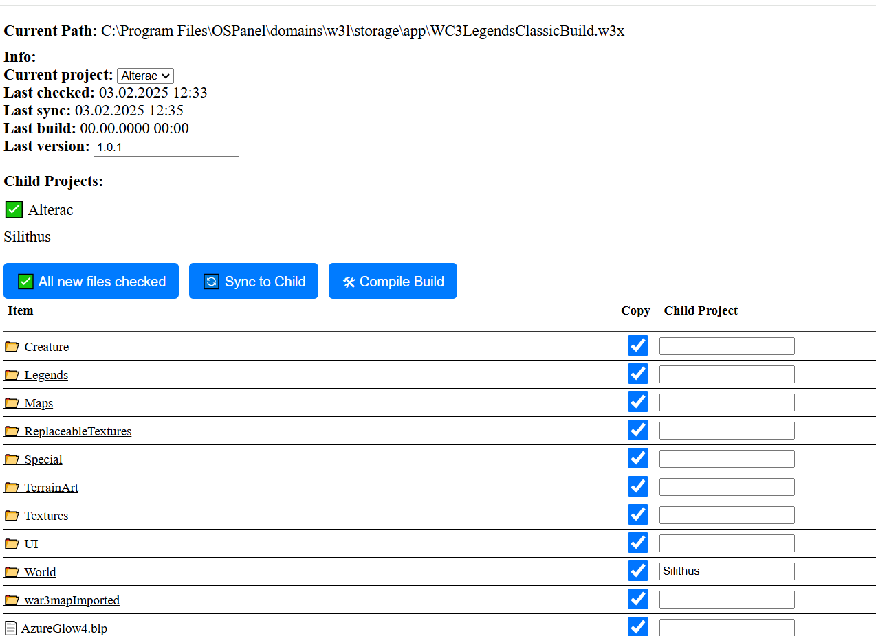 WarCraft Data Sync выполняет несколько операций для каждого дочернего проекта: