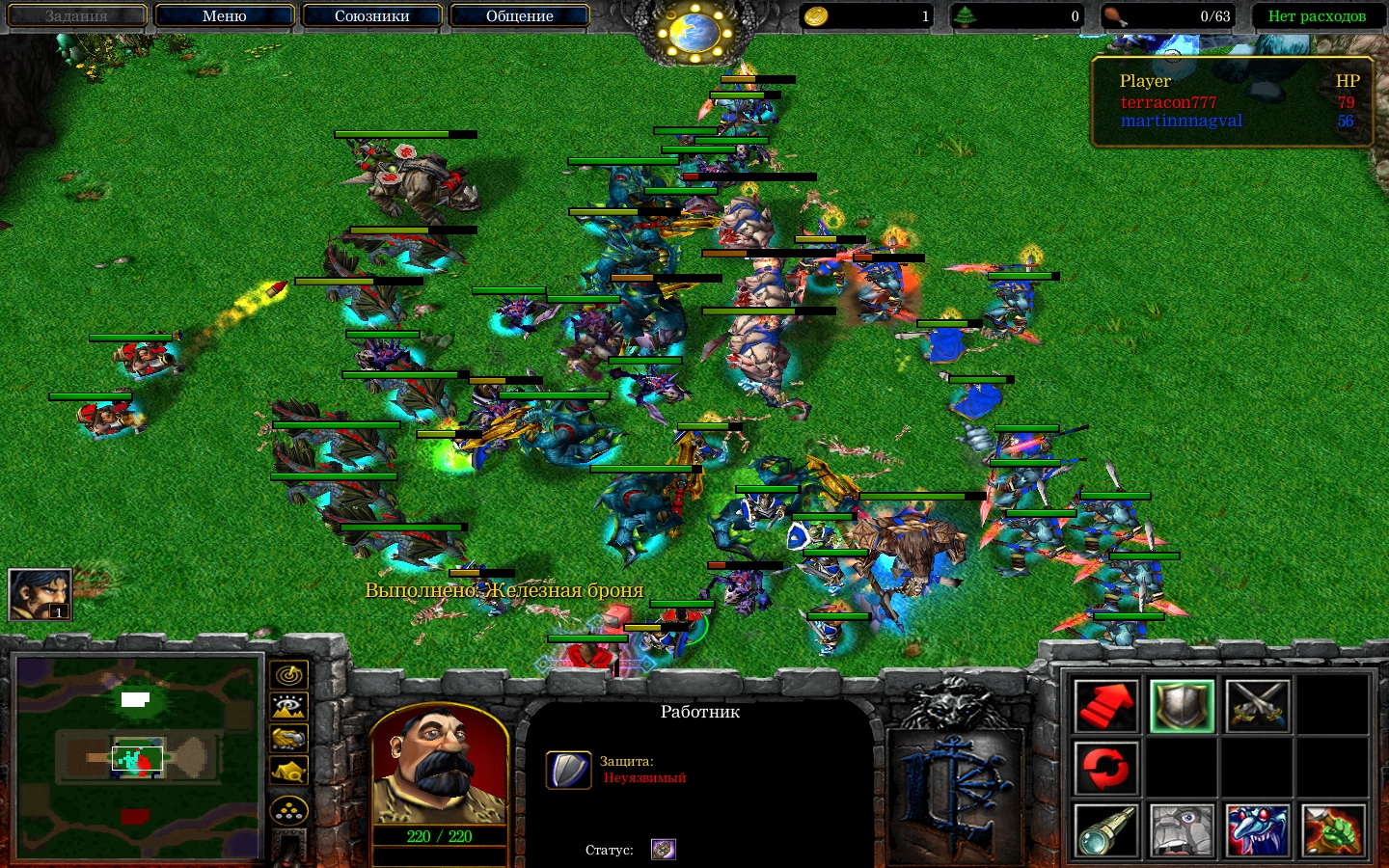 • В случае если юниты возвращаются на место спавна, и не бегут во враждебный портал, нажмите заклинание у работника, с названием "Эй ку-ку вы чё там встали!", это отправит ваших юнитов в атаку, если вы играете с ботом, это также отправит в атаку и юнитов бота.