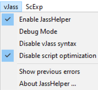 • Enable JassHelper - включает дополнительный функционал работы с кодом.