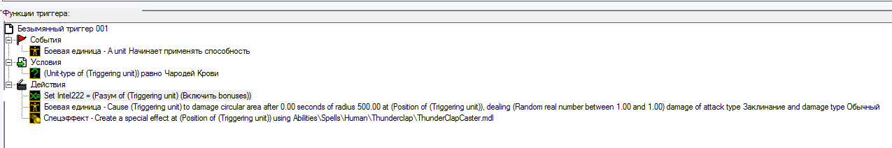 Так вот,пытался сделать триггерное умение на аое-взрыв после использования бафа,с уроном равным инт.х2.5.