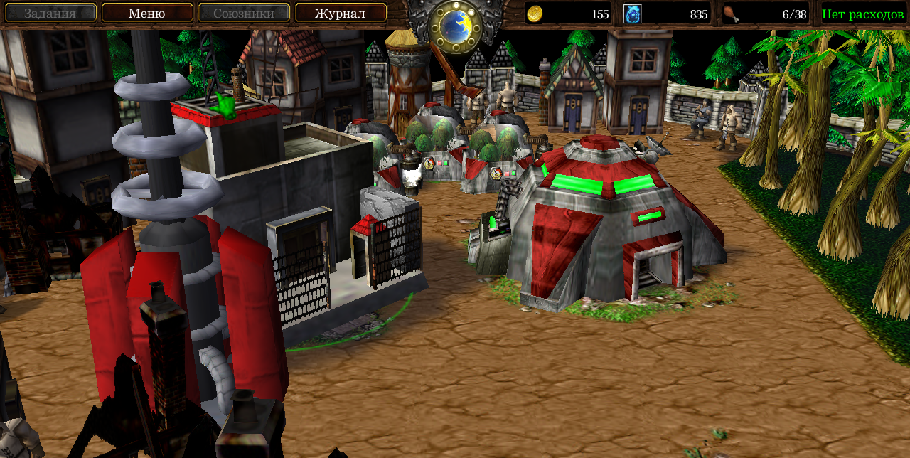 Скажу сразу насчёт графической части. Ландшафт очень слабый. Тайлы сделаны огромными пятнами, декора мало, он скудный и расставлен почти рандомно. Читайте статьи. Футуристические модели совершенно не вяжутся со стандартными варкрафтовскими домиками и заборами.
