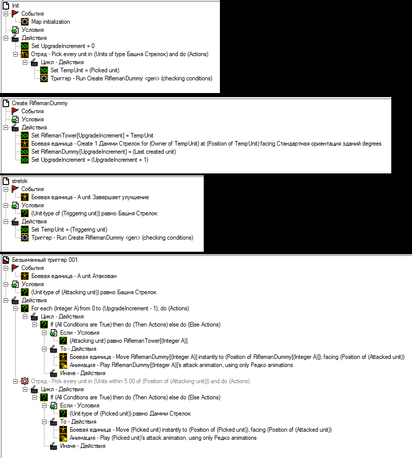 К сожалению, таким способом будут работать только башни, улучшенные до Башни Стрелка во время игры. Если изначально на карте стоят Башни Стрелки, они работать не будут. Если надо могу исправить.