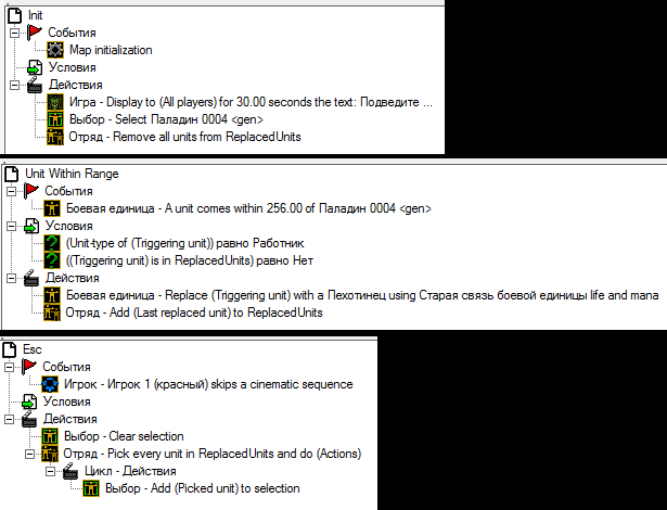 В редакторе есть только действие с last replaced unit (последний замененный юнит), а мне нужно выделить их все, но не по типу боевой единицы, а именно все замененные юниты. Привязать к переменной тоже не могу, так как действие будет касаться только последней замененной боевой единицы.