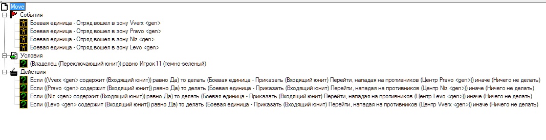 Регион будет "содержать юнит" через 0.4 сек после того, как юнит "вошёл в регион". Так что приказы игнорируются из-за невыполнения условия
