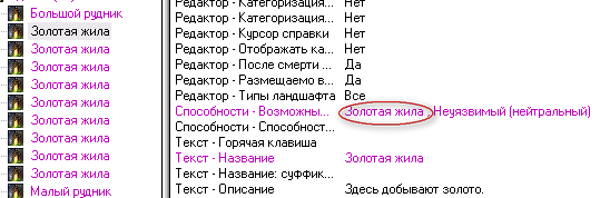 - Второй скрин: свойство самого объекта "Золотая жила"