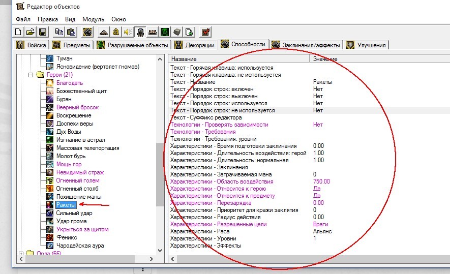 Способности "Стальные лезвия" баллисты, "Ракеты" танка и "Громовой молот" всадника грифона ничего не дают. Это просто индикаторы. Свойства меняет улучшение. У танка кроме индикаторной способности есть способность "Тёмный" , у которая тоже в требованиях висит улучшение. "Тёмный" выполняет работу по превращению юнита.