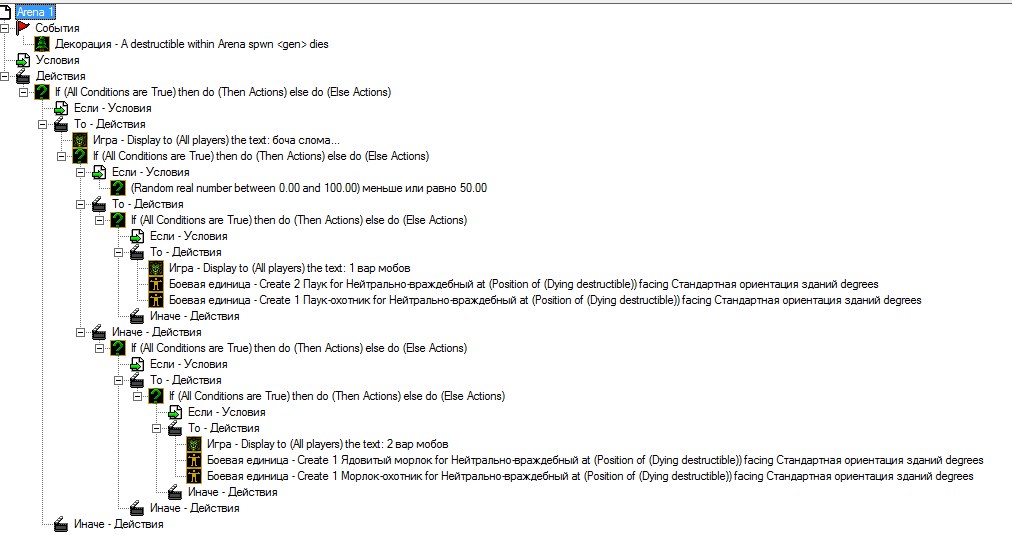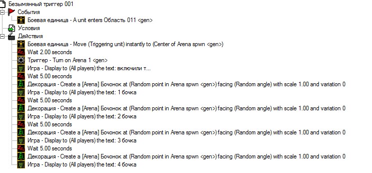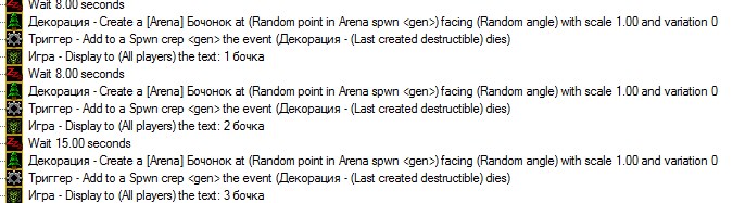 + запускается 2й триг, проверяю уничтожаемые декорации в регионе (арена) + тип уничтожаемой декорации = бочка.