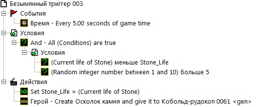 Нужен триггер такого типа, если персонаж бьет определнный объект (в моем случае камень) то есть шанс выпадения определнного предмета в инвентарь персонажа, (либо вариант на каждый из ударов шанс 50% либо раз в 5 секунд шанс 50%) как вы сможете, для меня не принципиально