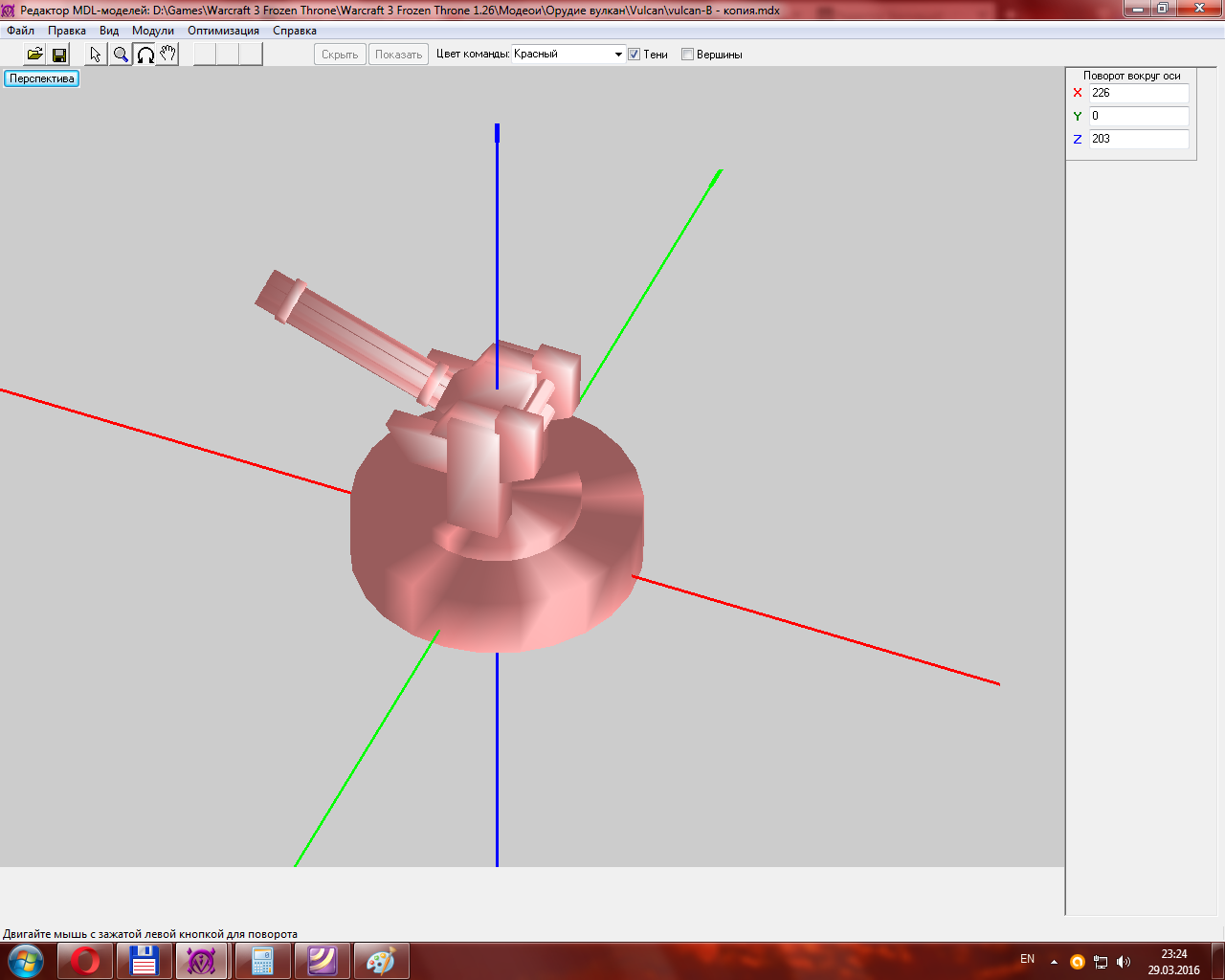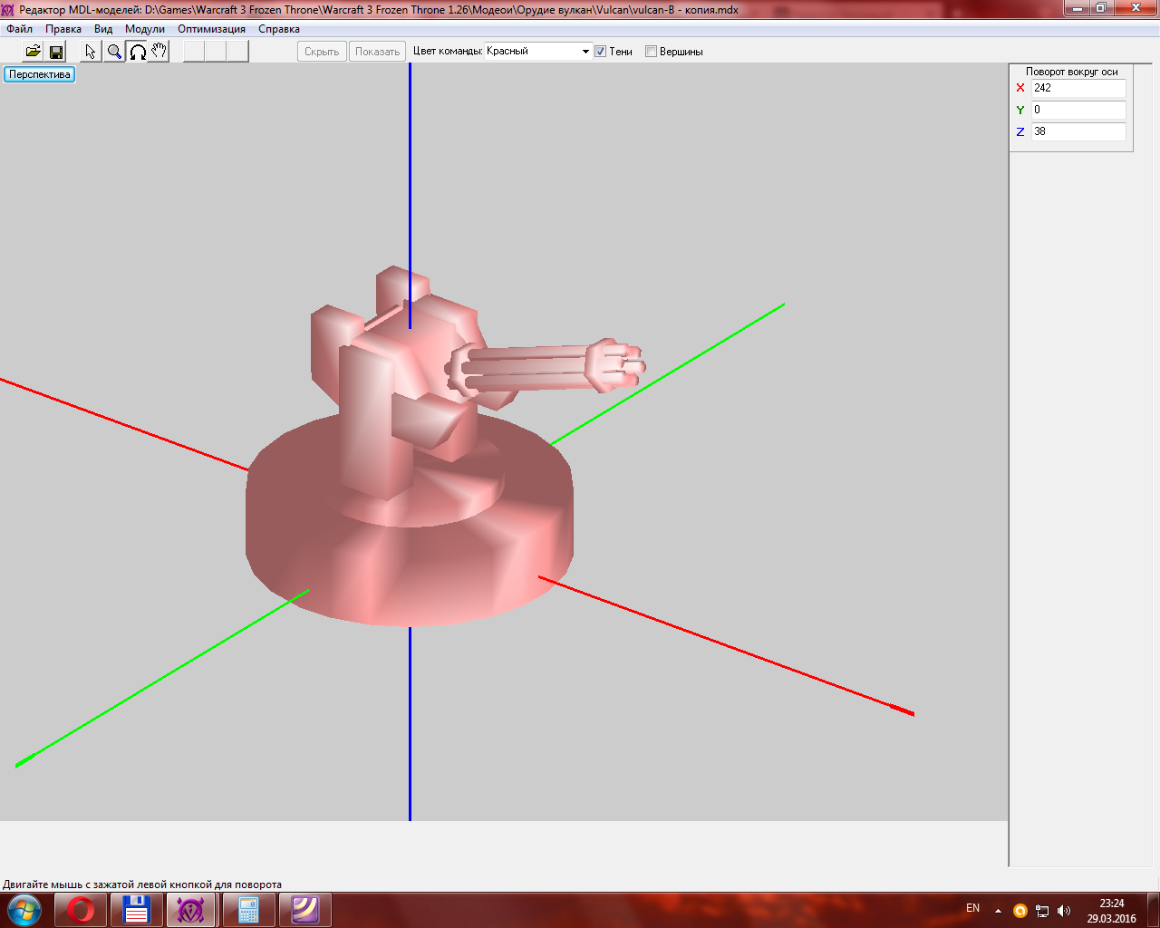 Решил немного заняться моделированием, сейчас я остановился на создание анимации, и я не знаю как сделать так чтобы выделенная кость вращалась вокруг оси (В статьях ничего не нашел насчет этого) Вот скрин модели немного модернизированной мной. С тестурами пока не работал, с этим тоже проблемка, я пока не знаю как через mdlvis импортировать текстуры. И еще для чего нужны нормали?