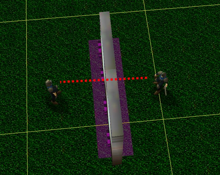 Дальше, проверять путь что между атакованным и атакующим является проходимым.