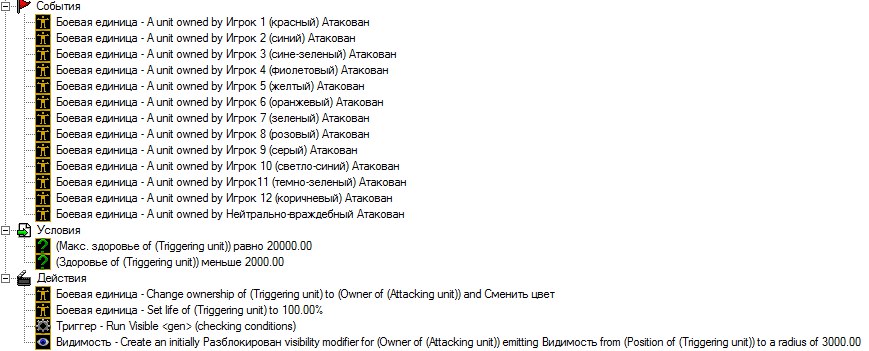 Игрок 1(красный) не равно (Owner of (Attackerd unit)) или на (Owner of (Attacking unit) не равно (Игрок 1(красный),