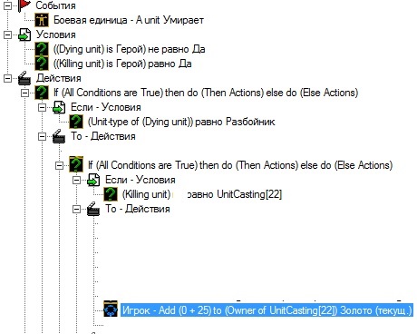 3. награду ставь не просто "add 10 to (owner of (killing unit) - или фиксация) gold - золото (или дерево)" а ставь где число через сумму (арифметика) 0+10, получится так "add (0+10 - арифметика) to (owner of (killing unit) - или фиксация) gold - золото (или дерево)"
