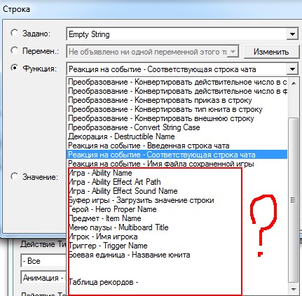 2. По этой причине часть функций, условий и событий не переведена на русский, либо представляет собой вообще строку без названия.