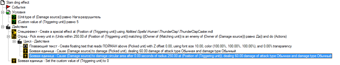nvc123, Этот триггер срабатывает только если castom value of unit равно 5 - и при конце триггера она на 0 ставиться. Сейчас попробую обнулить её до срабатывания урона и сообщу.