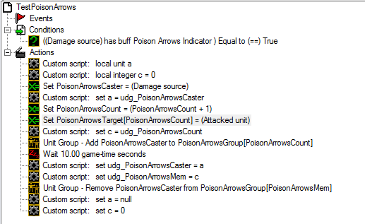 PoisonArrowsGroup - переменная типа "Unit Group", массив, размер (Size) - 1 (для чего параметр size, я не знаю, у меня есть массив kill типа integer с size=1, но он вмещает больше 1 значения одновременно).