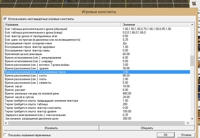 Там меняем "Время разложения - кости" и "Время разложения - плоть"