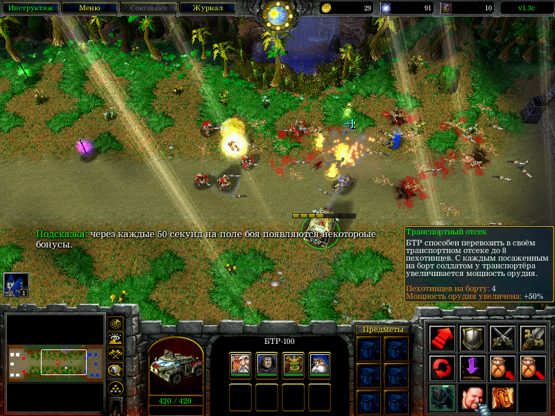 - новая боевая машина БТР-100 (за идею создания особоая благодарность Eligreen'у), служит броневым транспортом для пехоты, вооружена лёгкой автоматической пушкой, обладает следующими способностями: залп гранатами, транспортный отсек и возмездие (аура)