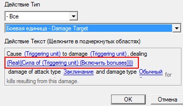 Думаю, можно попробовать использовать это действие для нанесения урона заклинанием, а выделенный пункт настроить так, как угодно (условия с характеристиками, здоровьем и маной в "Преобразование - Convent Integer To Real"). Если нужно все параметры совместить, то Arithmetic в помощь.