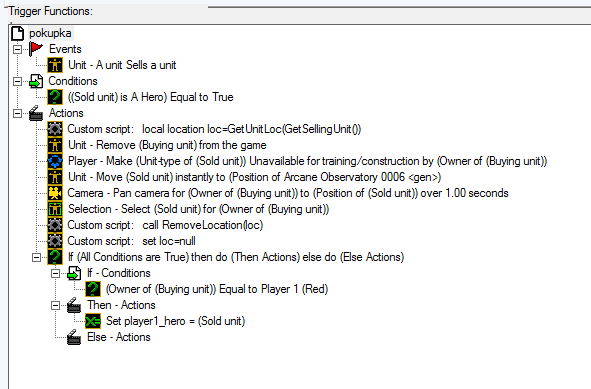 Никак не получается отследить покупку юнита. Банально есть лавка которая продает героев на выбор, хочу отследить событие когда героя из лавки покупают, он появляется и я могу с ним произвести любые триггерные манипуляции (переместить на базу, записать в переменную и тд..)