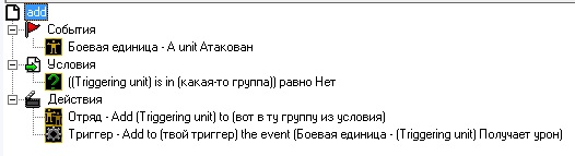 Юнит атакован - если юнит не в группе х - добавить юнит в группу х и создать для твоего первого триггера событие, что атакованный юнит получает урон