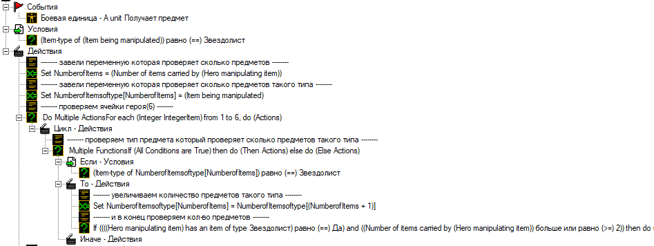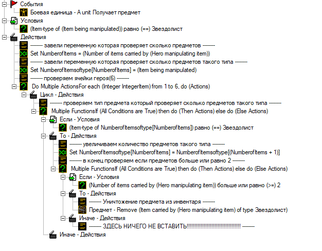 может ошибка в других триггерах?..я так не думаю...он же по любому должен увидеть уровень... да даже если я уберу hero manipulating item и оставлю только кол-во предметов он все равно уничтожит...мне нужно только 2 уничтожить а не все предметы такого типа...черт его знает