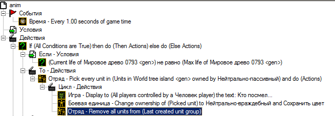 Задача если кто-то попытается срубить мироваое древо, отдать эльфов стражей к нейтрально враждебным, и показать их реплику владельцу юнита атаковавшего древо. Как отловить игрока владельца атаковавшего разрушаемое дрвево, и как удалить группу при помощи гуи, ведь это событие однократное, и я так понял пустая группа юнитов это утечка?