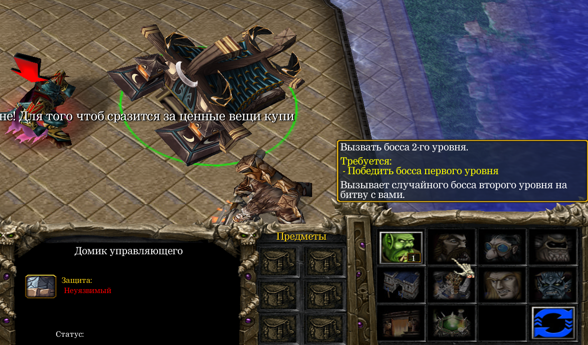 Уже не пойму как это работает. Помню одну хитрость, напишу. Так если посмотреть в стандартных картах, например, чтобы построить одно здание, нужно другое (мастерской нужна кузница). Или чтобы купить одного юнита, нужно иметь еще одно определенное здание (стрелка можно нанять при наличии кузницы). По сути, можно в требованиях вставить невидимого даймика. Если триггерно добавить, то это требование уберется. Если хотите снова добавить требование, удалите даймика. А в имени даймика пишем: "Победить босса первого уровня".
